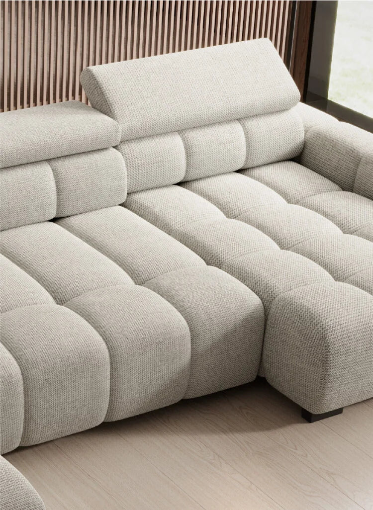 BULL XL– tai puikus pasirinkimas visiems, kurie vertina modernų dizainą ir ieško nepriekaištingo komforto. U formos kampas suteikia erdvės visai šeimai ar draugų kompanijai, leidžia patogiai susėsti ir mėgautis bendru laiku. Elektriškai reguliuojama sėdimoji dalis leidžia lengvai pritaikyti sofą pagal savo poreikius, o reguliuojamos galvos atramos užtikrina maksimalų poilsį kiekvienai dienai. Išskirtinis siuvimas suteikia sofai stilingą akcentą ir unikalų charakterį, pabrėždamas jos modernią estetiką.