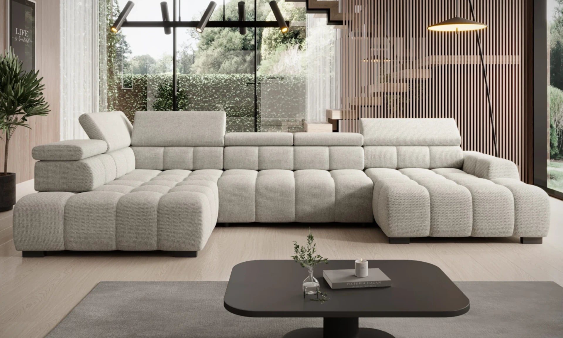 BULL XL– tai puikus pasirinkimas visiems, kurie vertina modernų dizainą ir ieško nepriekaištingo komforto. U formos kampas suteikia erdvės visai šeimai ar draugų kompanijai, leidžia patogiai susėsti ir mėgautis bendru laiku. Elektriškai reguliuojama sėdimoji dalis leidžia lengvai pritaikyti sofą pagal savo poreikius, o reguliuojamos galvos atramos užtikrina maksimalų poilsį kiekvienai dienai. Išskirtinis siuvimas suteikia sofai stilingą akcentą ir unikalų charakterį, pabrėždamas jos modernią estetiką.
