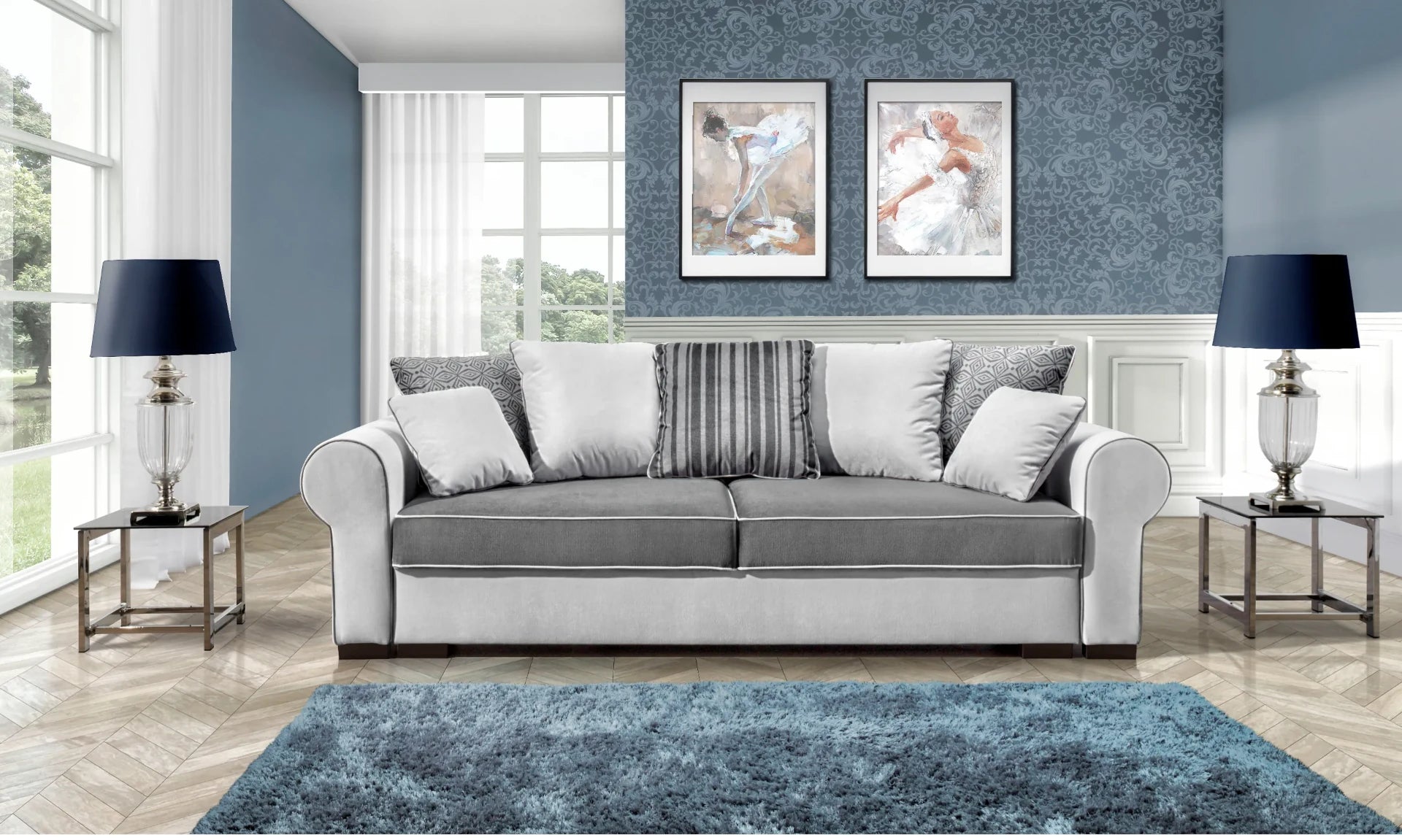 Klasikinė ir elegantiška "Deluxe" sofa taps glamūrinio stiliaus svetainės akcentu. Minkštos atlošo pagalvėlės ir patogi sėdynė garantuoja patogų poilsį, o sofoje įrengta patogi miegamoji funkcija tarnaus Jums kaip papildoma miegamoji vieta.