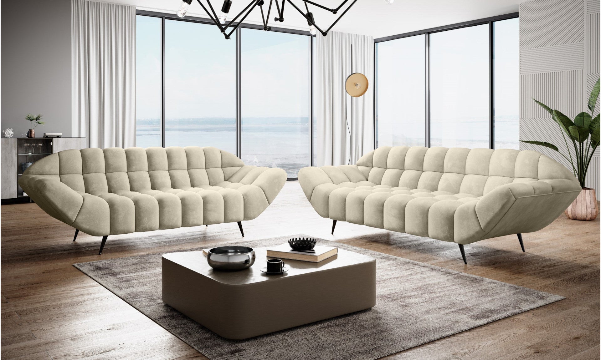 Ekstravagantiška, moderni ir itin patogi sofa. Puikiai suformuotas atlošas leidžia patogiai įsitaisyti sofoje, o aukštos kojos pabrėžia jos liniją, suteikdamos lengvumo ir grakštumo.