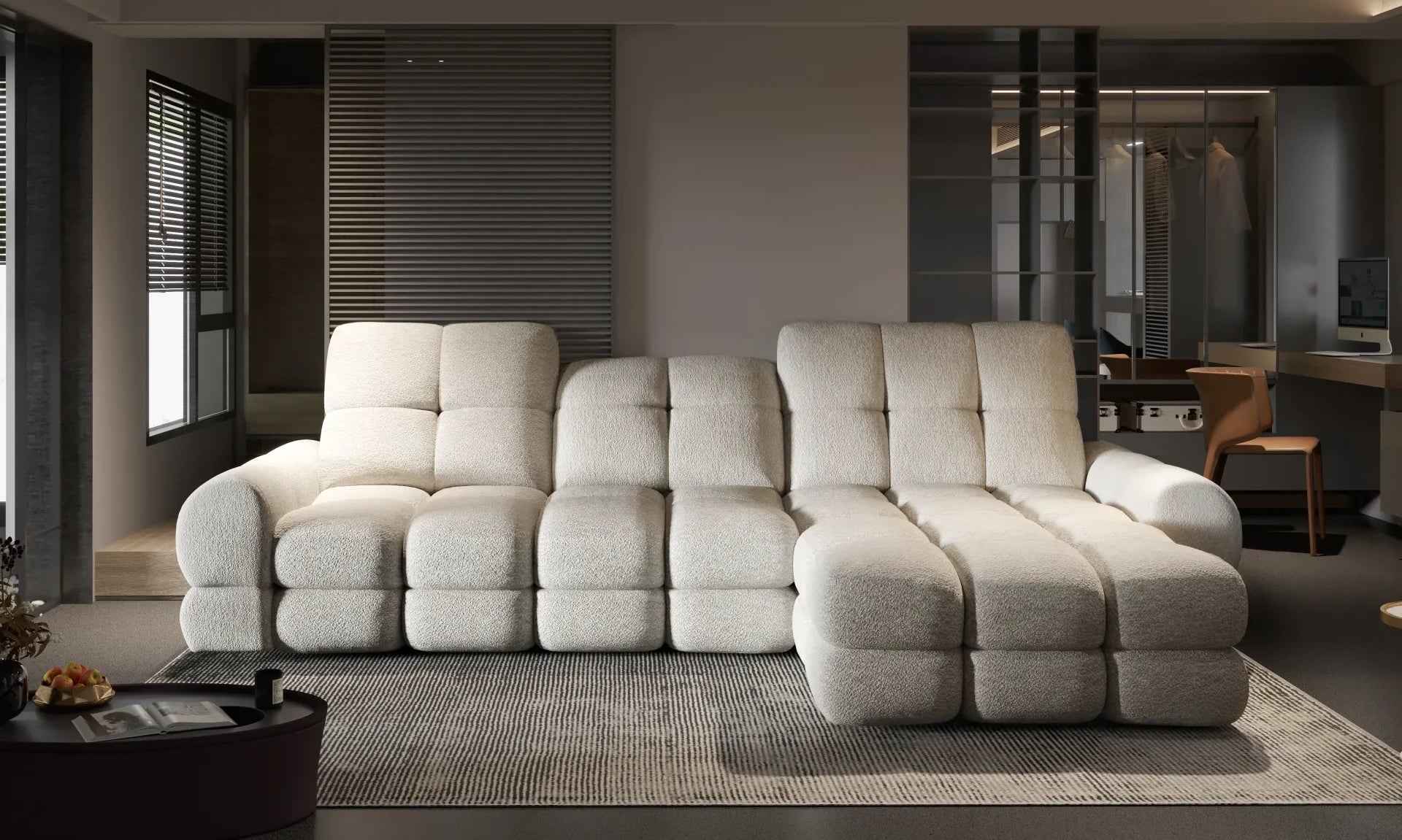 Šis kampas yra sukurtas pagal naujausias tendecijas, kur masyvi ir patogi sėdynė yra išryškinta giliu dygsniavimu, kas sukuria originalią ir neįprastą baldo išvaizdą. Reguliuojami galvos atlošai leidžia reguliuoti sėdynę, o didelė patalynės dėžė užtikrins, jog vietos niekada nebus mažai.